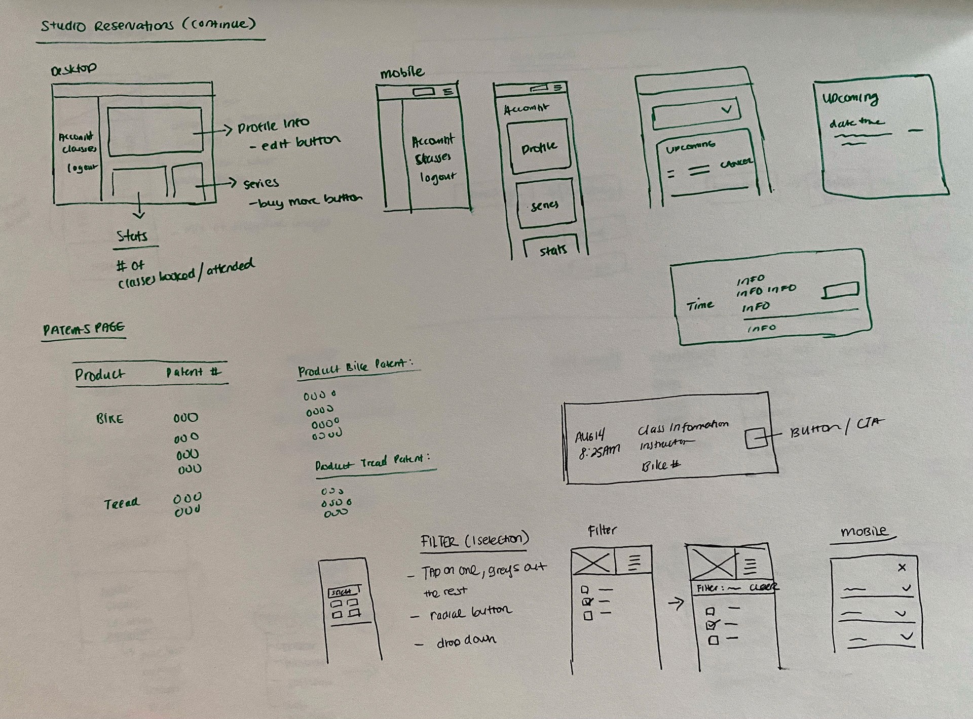 Partnered with our team's researcher, she and I tagged team to do guerilla-style interviews with members at the studio. We spoke to 10 individuals with varying levels of familiarity with our current studio reservation page. They were presented with a mobile or desktop prototype to gather whether the experience was or wasn't easy and intuitive. Through speaking with our members, it became evident that there were still some pain points to address, which we took back to prioritize and tackle.